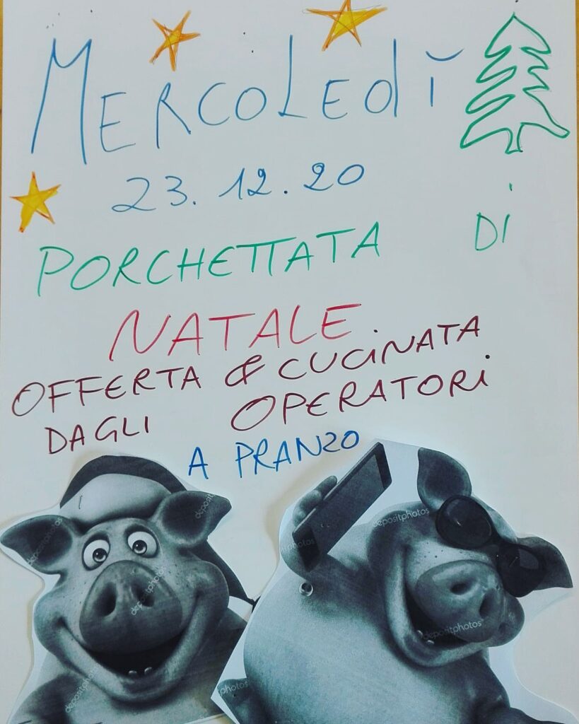 Nel giorno dell’antivigilia é stata organizzata una “porchettata di Natale”: gli operatori hanno organizzato un pranzo a base di porchetta per i numerosi ospiti della struttura.