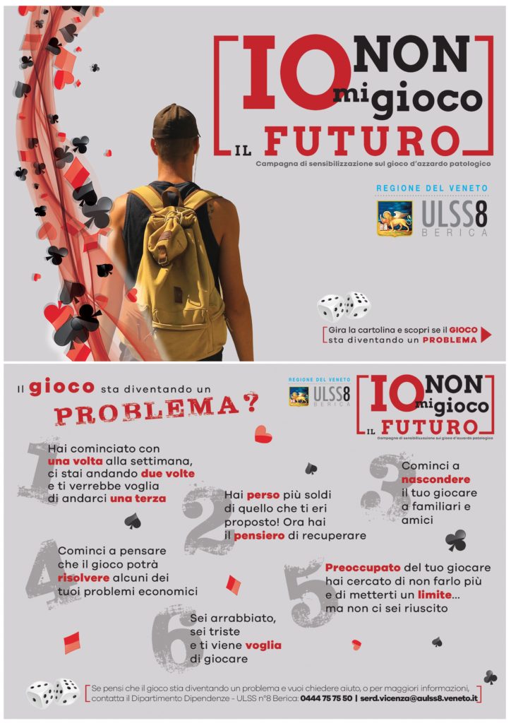 [1] La Regione Veneto con il Piano Regionale del Gioco d’azzardo Patologico approvato nel 2017 investe sulla prevenzione, sul trattamento di cura, sul recupero e sulla riabilitazione, con un approccio multidisciplinare e integrato, coinvolgendo anche le reti territoriali e il privato sociale.